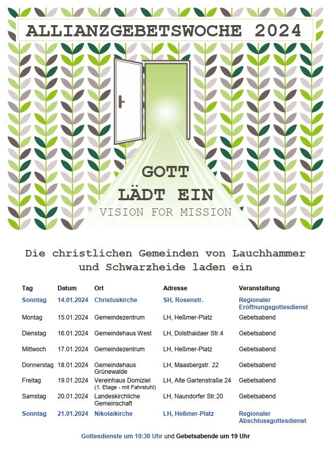 LKG InfosVeranstaltungen in Lauchhammer (Kw 2 und 3) 12. Januar 202412. Januar 2024 LKG Elsterwerda/Lauchhammer (Admin) Wir laden zu einer Video-Andacht am Sonntag, den 14. Januar, um 17 Uhr im Gemeinschaftssaal ein. Teilen mit: Auf X teilen (Wird in neuem Fenster geöffnet) X Auf Facebook teilen (Wird in neuem Fenster geöffnet) Facebook Gefällt mir Wird geladen … Ähnliche Beiträge Veröffentlicht von LKG Elsterwerda/Lauchhammer (Admin) Zeige alle Beiträge von LKG Elsterwerda/Lauchhammer (Admin)